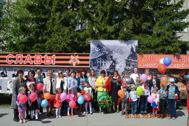 7 мая 2015 года у воспитанников детского сада гости: ветераны войны и труда Власова Клавдия Павловна и Криницына Дарья Михайловна. | |